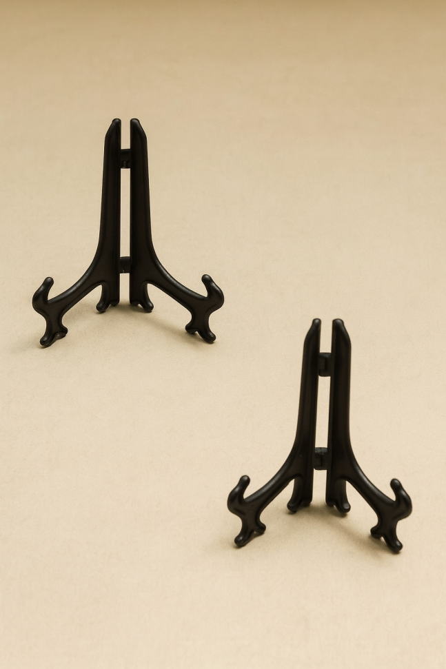Многофункционална стойка за рамка със снимка или картина, изработена от здрава и олекотена прозрачна пластмаса.