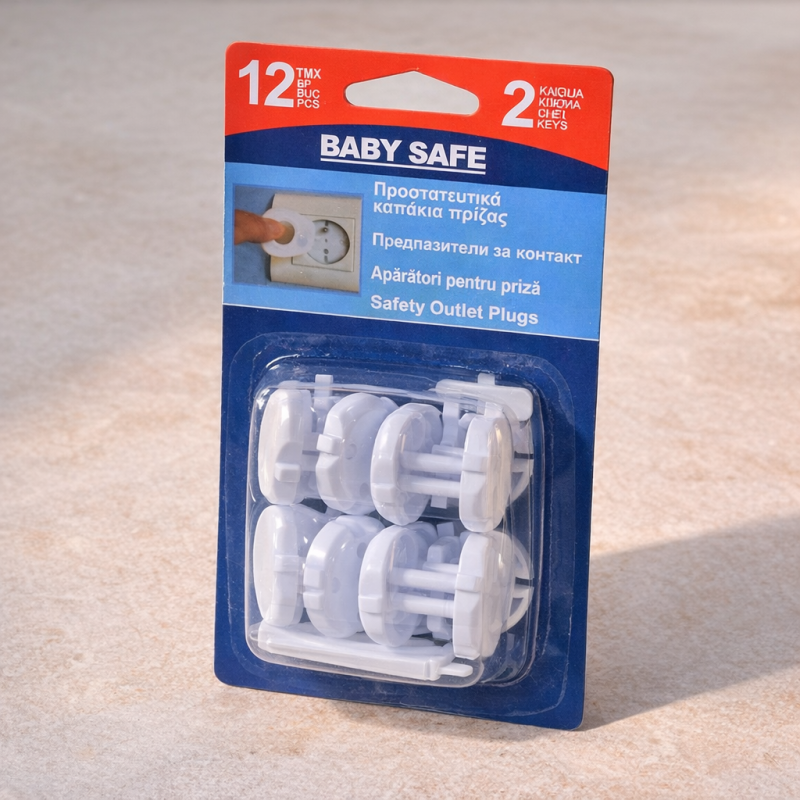 Комплект от 12 броя предпазители за електрически контакти с ключ за премахване (2 броя ключове), които намялват риска от токов удар.