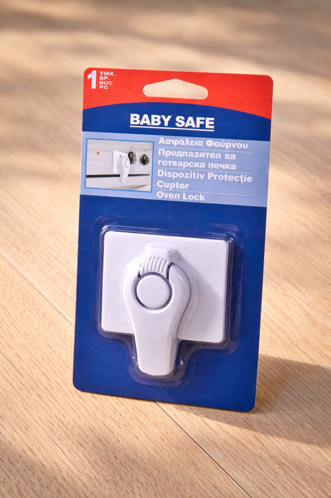 Освен за готварска печка устройството е подходящо и за заключване на чекмеджета и шкафове без дръжки.