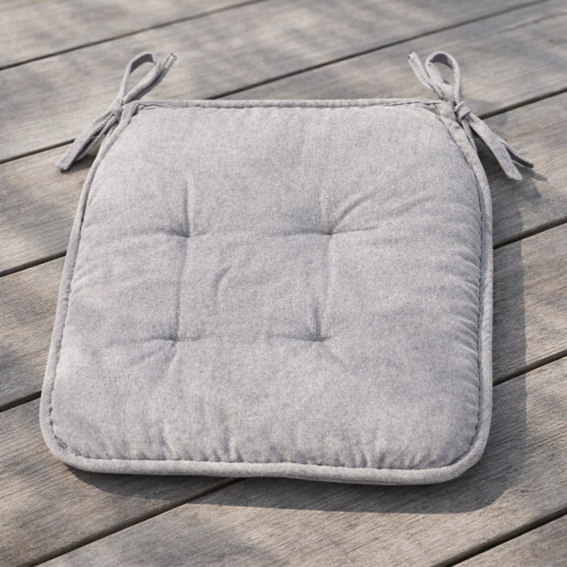 Квадратна декоративна възглавница за стол, изработена от полиестер в сив цвят с удобни връзки.