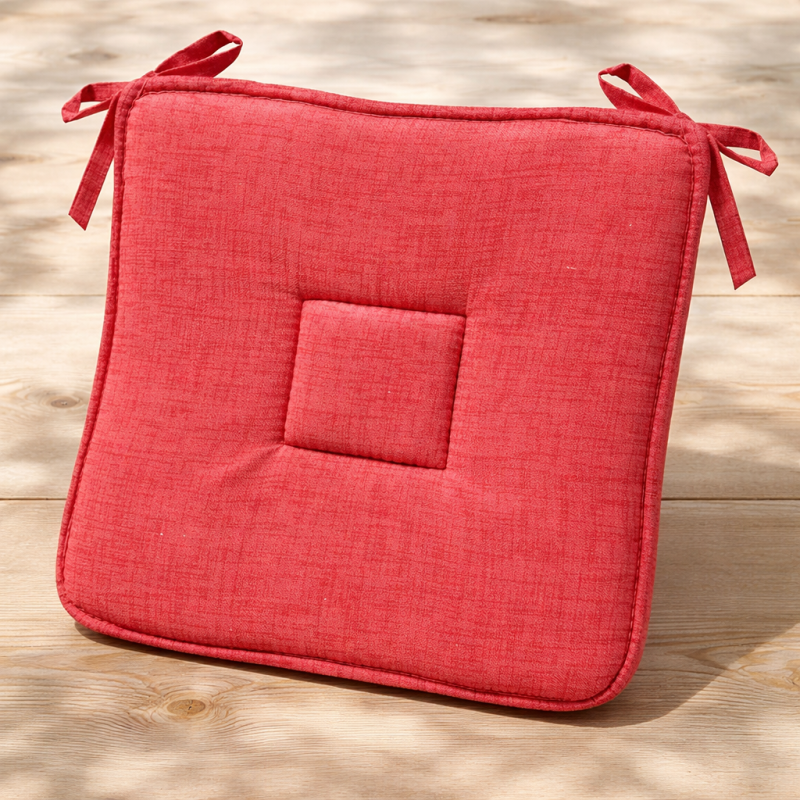 Декоративна възглавница за стол, изработена от памук, полиестер и дунапрен в цвят корал с удобни връзки.