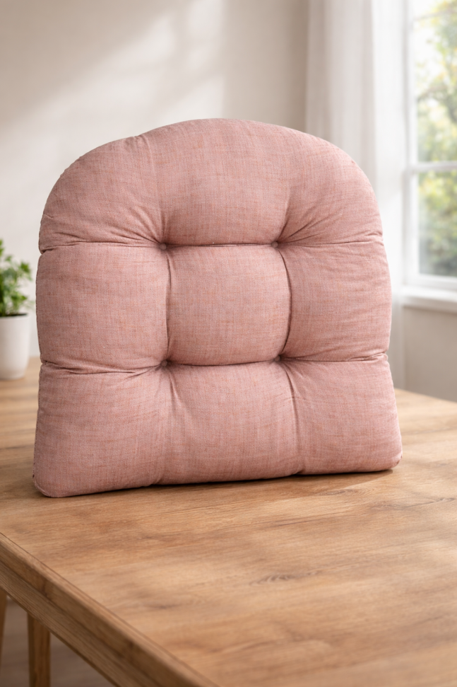 Декоративна възглавница за стол, изработена от памук, полиестер и пяна в бежов цвят.