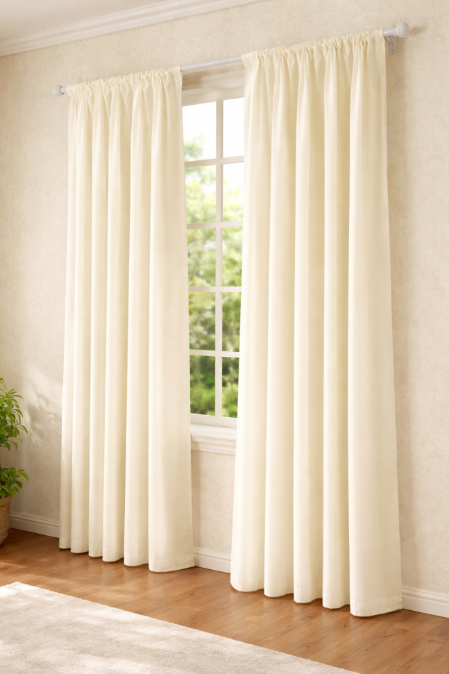 Полупрозрачна елегантна завеса, изработена от полиестер в цвят екрю, която осигурява уют и комфорт.