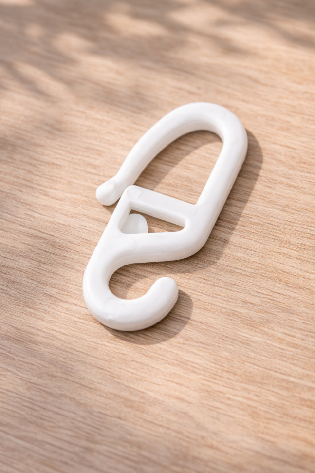 Икономична опаковка от 50 броя пластмасови кукички за окачване на пердета и завеси.