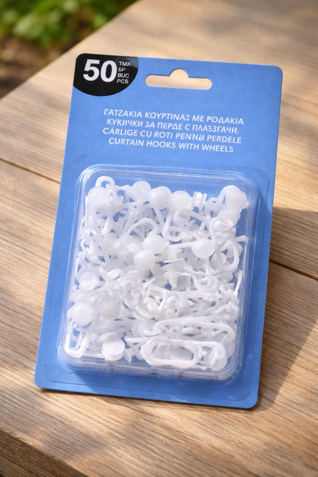 Икономична опаковка от 50 броя кукички с плъзгачи за пердета и завеси.