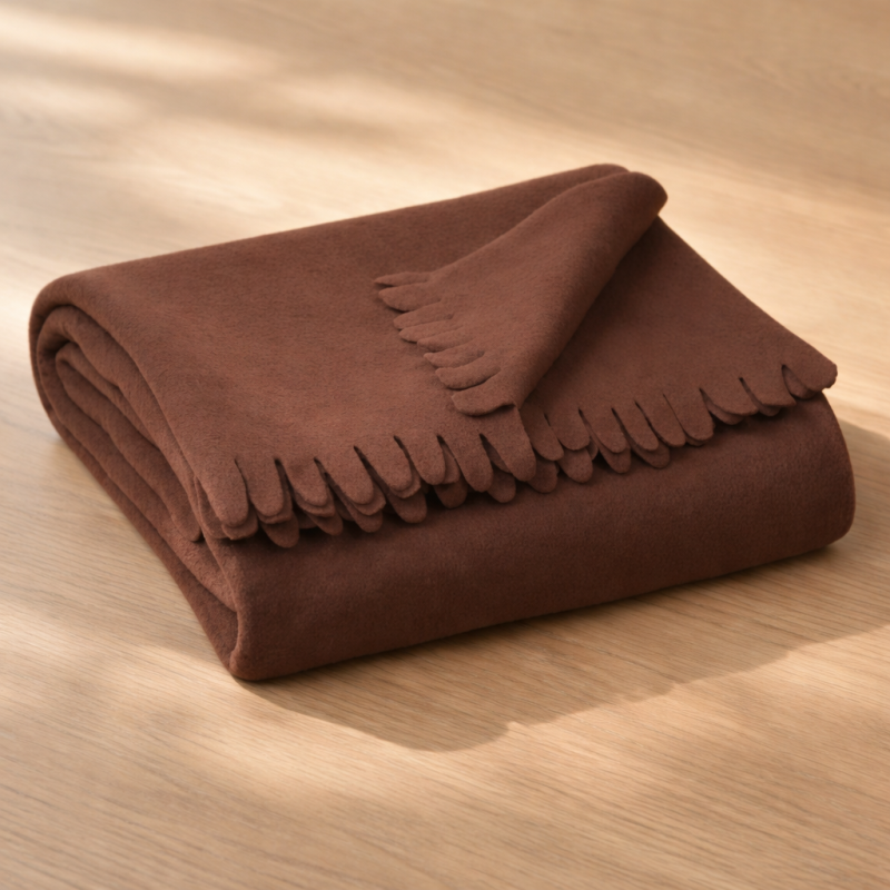 Декоративна покривка за диван, канапе, легло и др. в тъмно кафяв цвят с ресни.