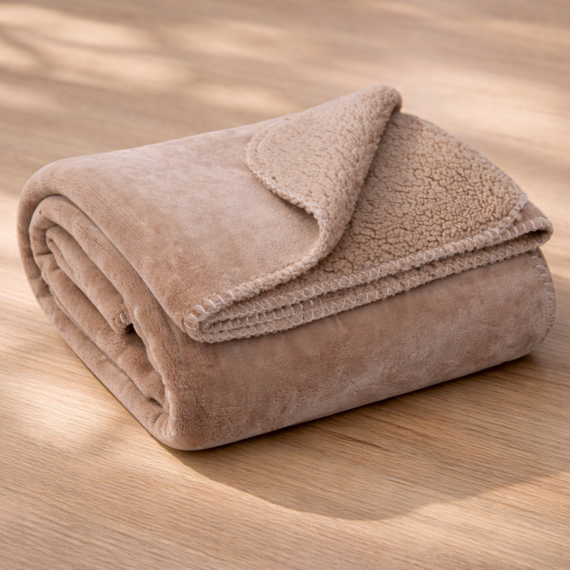 Декоративна покривка за диван, канапе, легло и др. в бежов цвят с топла страна, изработена от висококачествен материал шепра.
