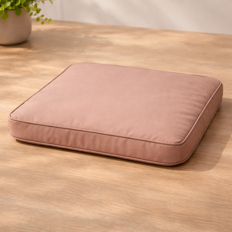 Квадратна декоративна възглавница за стол, изработена от полиестер в бежов цвят с функционални връзки.