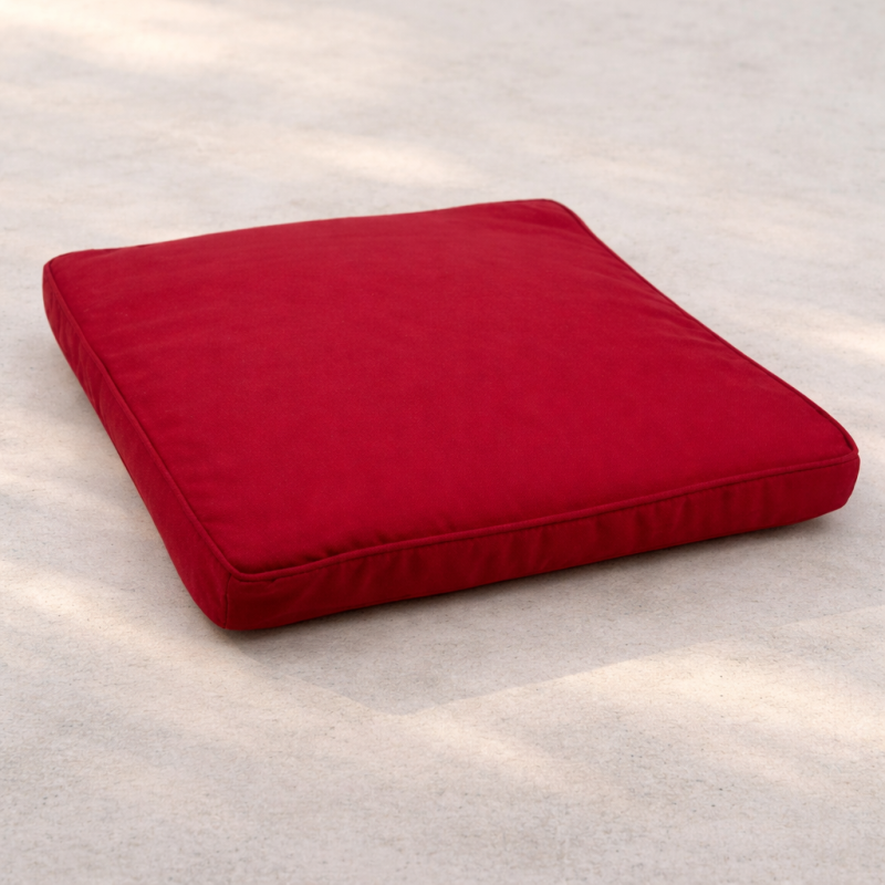 Квадратна декоративна възглавница за стол, изработена от полиестер в цвят бордо с удобни връзки за здраво закрепване към стола.