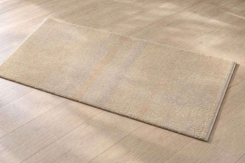 Постелка за под, изработена от мека и приятна материя в бежов цвят.