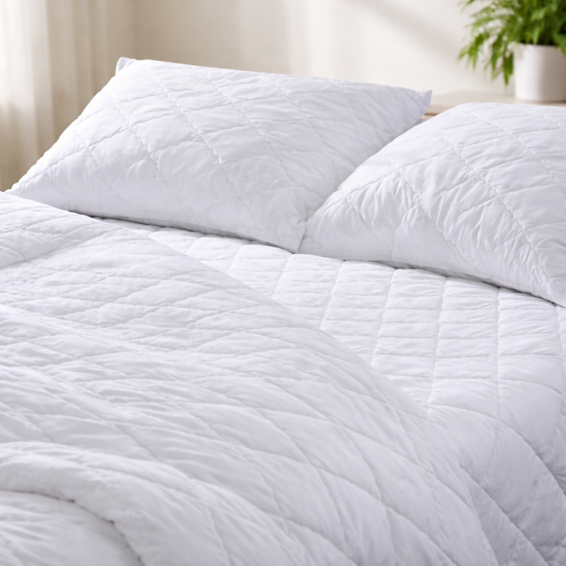 Калъфка за капитонирана възглавница, изработена от синтетичен текстил в бял цвят.