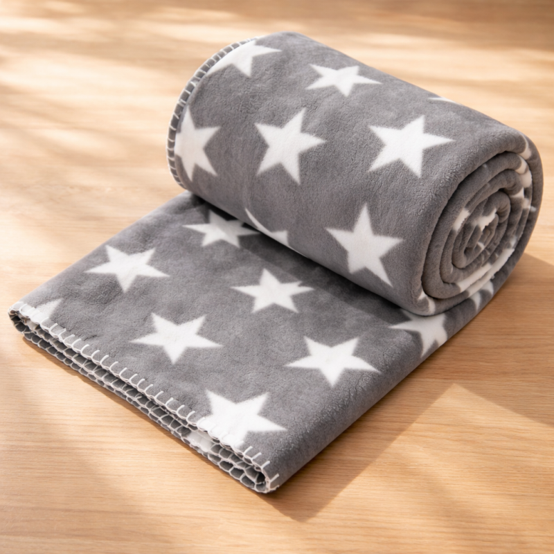Шалте за единично легло, изработено от мека и приятна материя в цвят графит с красив принт на бели звезди.