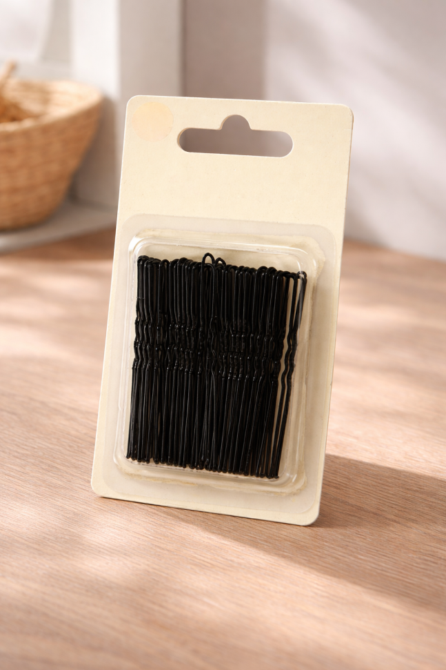 40 броя метални фиби тип фуркети в черни цвят.