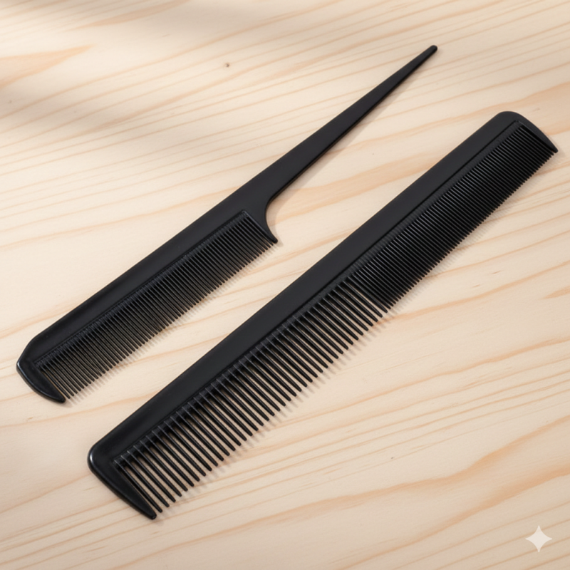 Комплект от 2 броя фризьорски гребени - за тупиране и подстригване, изработени от качествена пластмаса.