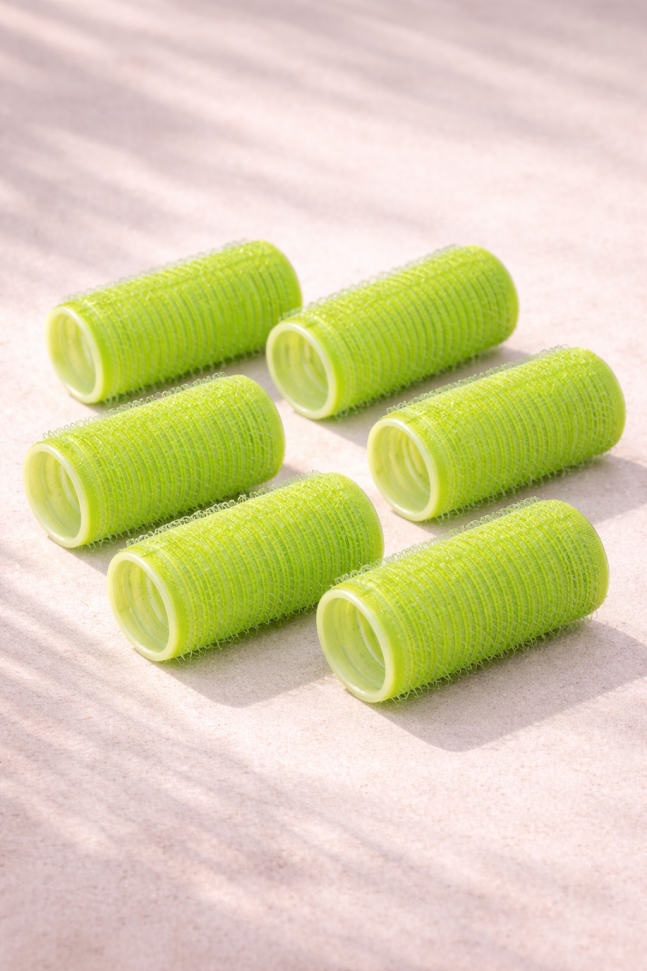 Комплект от 6 броя самозалепващи се ролки среден размер в светло зелен цвят.