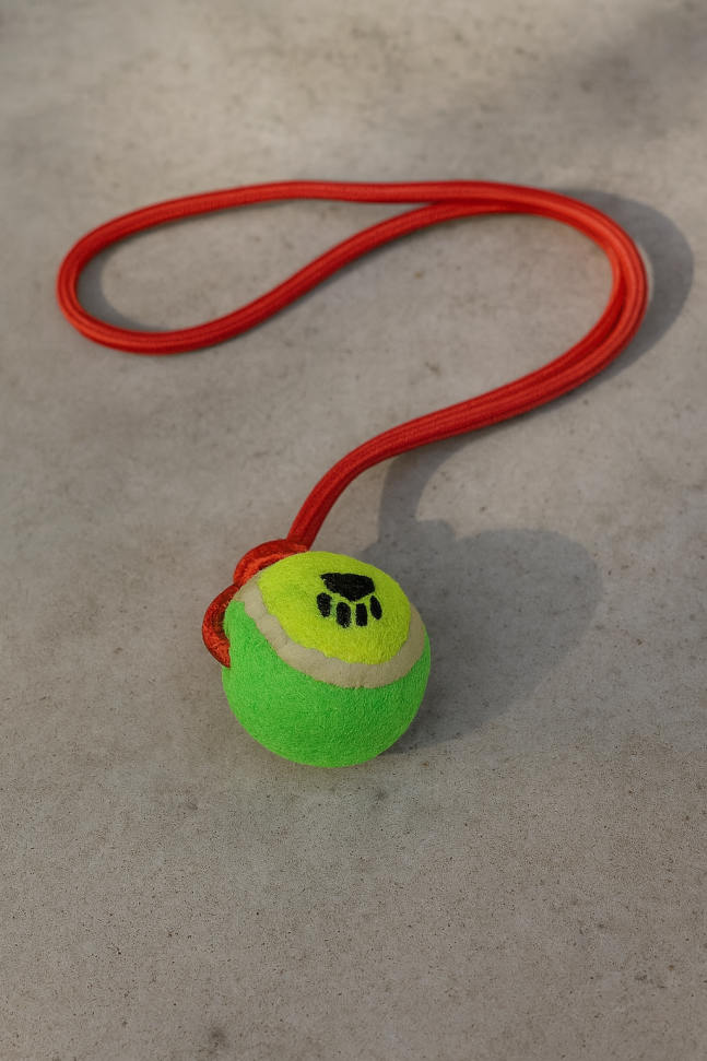 Висококачествена играчка за кучета във формата на топка за тенис с връзка.