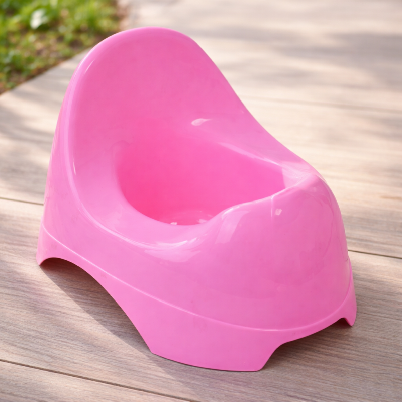 Бебешко гърне с облегалка, изработено от здрава и безвредна пластмаса в розов цвят.