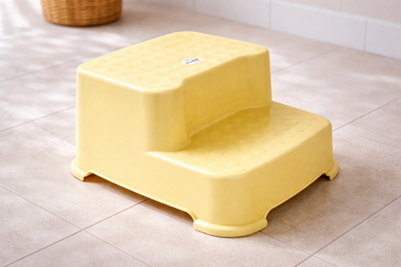 Детско двойно стъпало за баня, изработено от качествена и здрава пластмаса в жълт цвят.