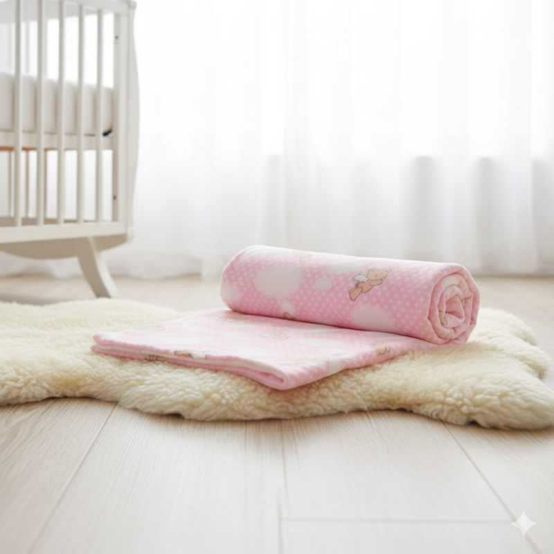 Шалте за бебешко легло - розово - две лица - 100 х 70 см.