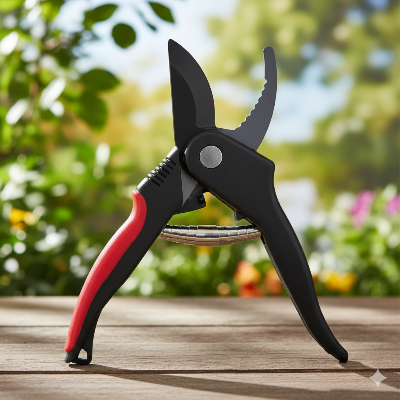 Алуминиева лозарска ножица за рязане на мека дървесина и храстовидни издънки с по-голям диаметър.