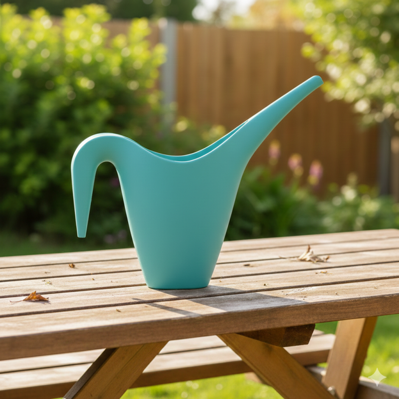 Универсална кана с удобна дръжка и дълъг чучур за лесно поливане на цветята без подливане.