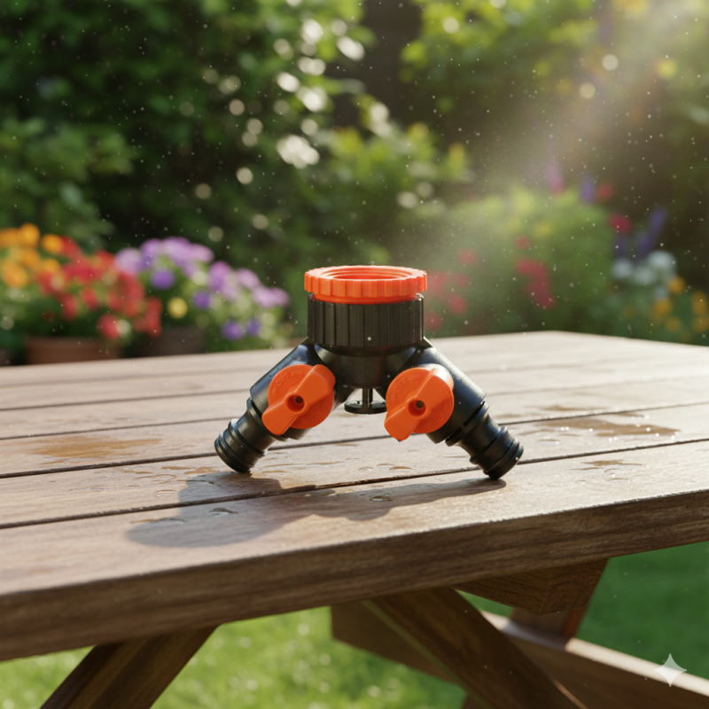 Двоен конектор за кран и маркуч с 2 клапана за включване и изключване.