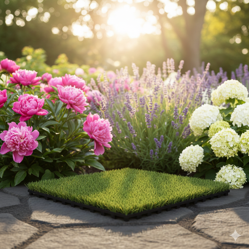 Плочка изкуствена трева с височина на стръкчетата 2 см. може да се използва за създаване на тревна площ, която не само не се нуждае от поддръжка, но и ще изглежда като истинска зелена ливада целогодишно.