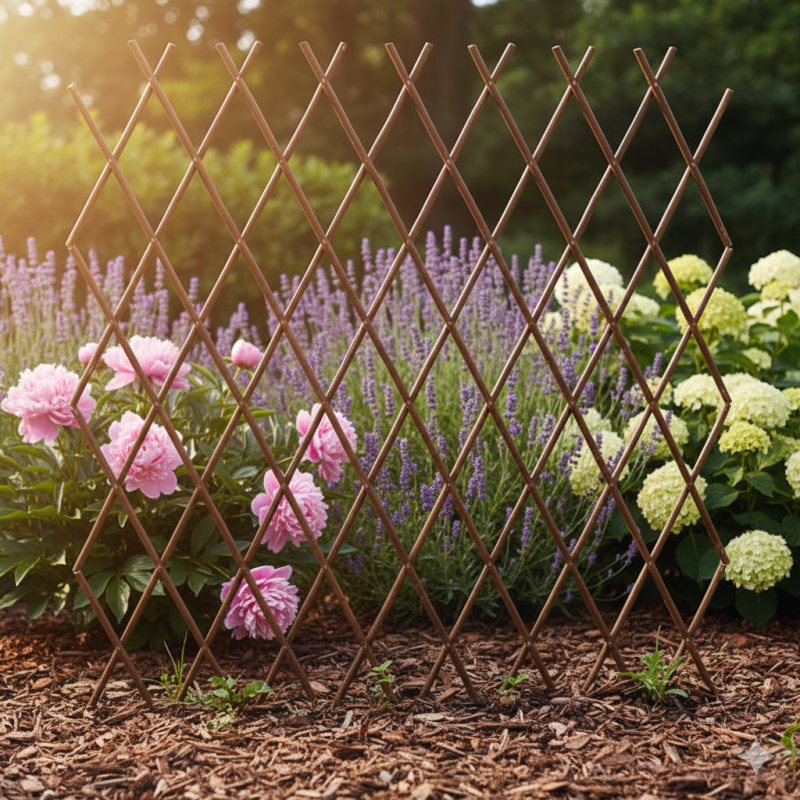 Дървена декоративна ограда тип пергола, която може да се използва и като стойка за увивни растения и цветя.