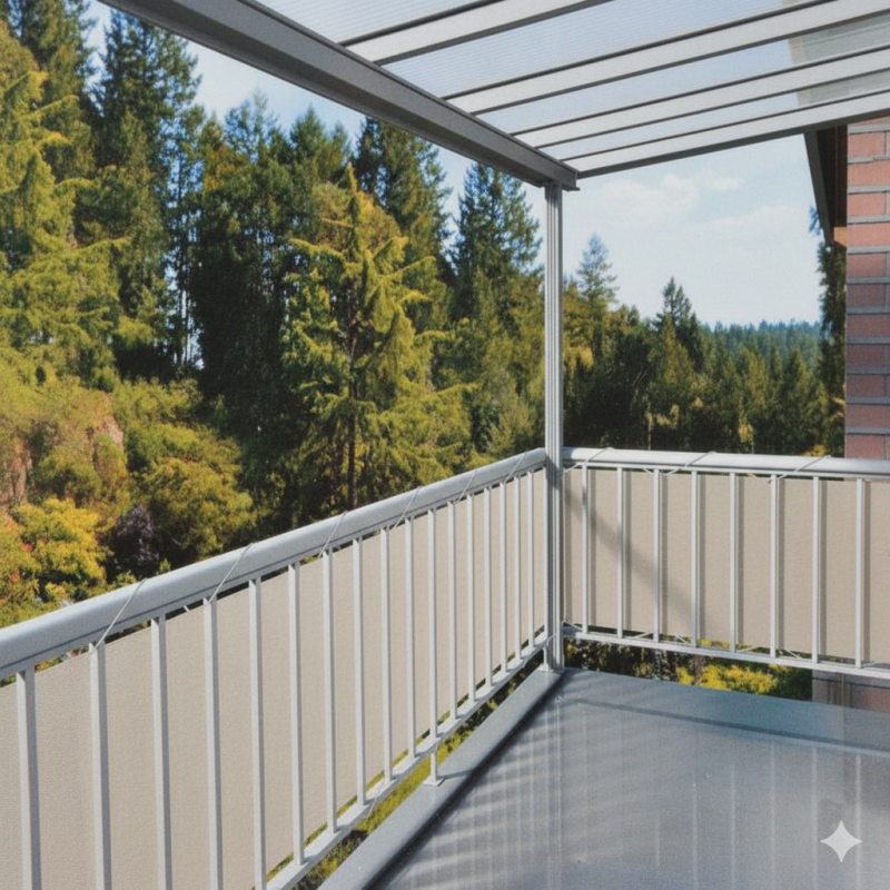 Предпазна мрежа за балкони, парапети и градини, изработена от устойчив на UV-лъчи полиуретан в бежов цвят.