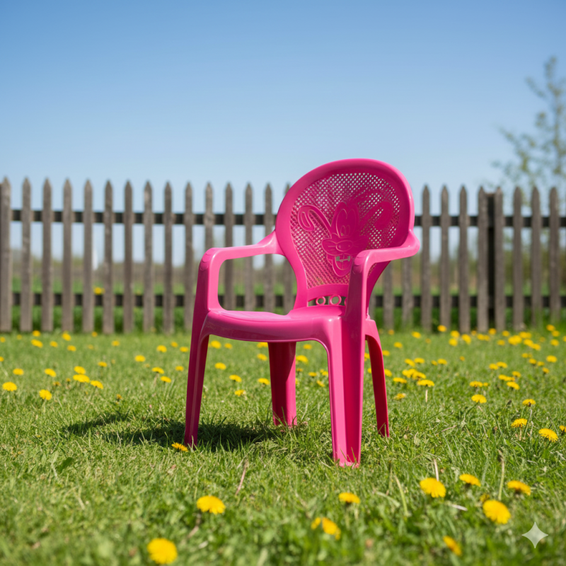 Универсално детско столче, изработено от устойчива и безвредна пластмаса в цикламен цвят с облегалка декорирана с картинка на Гуфи.