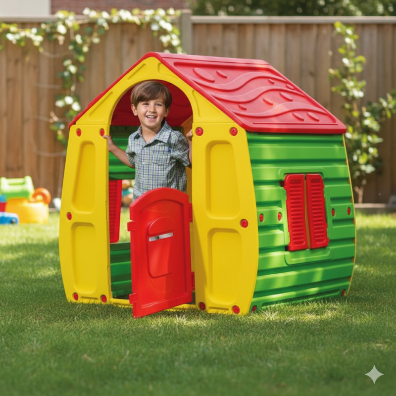 Детска магическа къщичка за игра, изработена от висококачествена пластмаса в ярки цветове с врата и прозорчета.