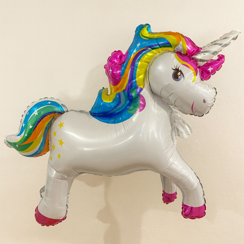 Парти балон във формата на еднорог, изработен от фолио в ярки цветове.