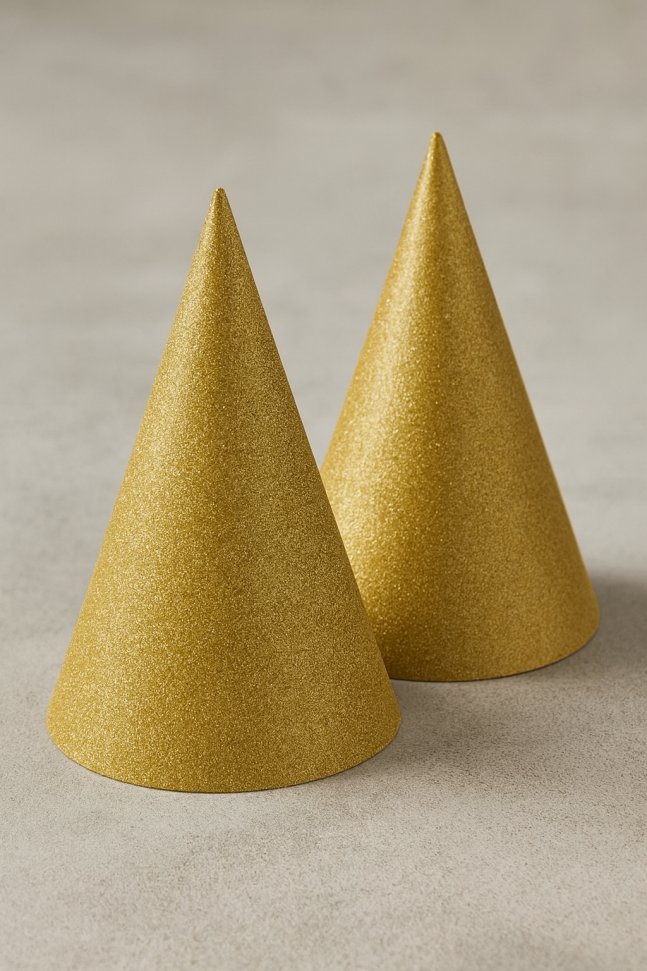 6 броя парти шапки с ластик, изработени от картон със златисти брокатени частици.