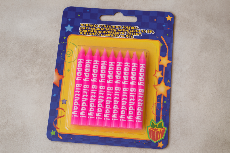 Свещи за торта - цикламени - HAPPY BIRTHDAY - 16 бр.