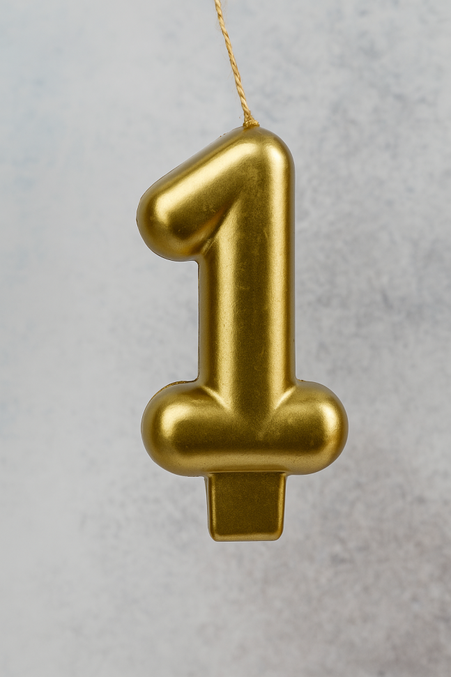 Празнична свещ за торта във формата на цифрата 1 в златист цвят, която ще бъде страхотно допълнение към всяко парти за рожден ден на дете.