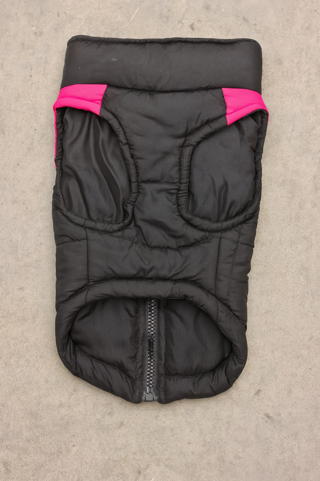 Топло шушляково яке за кучета без ръкави с цип на гърба за лесно обличане и събличане.