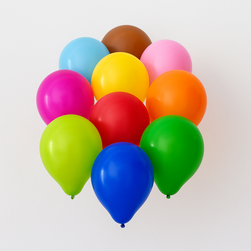 50 броя парти балони, изработени от траен каучук с класическа форма в различни ярки цветове.