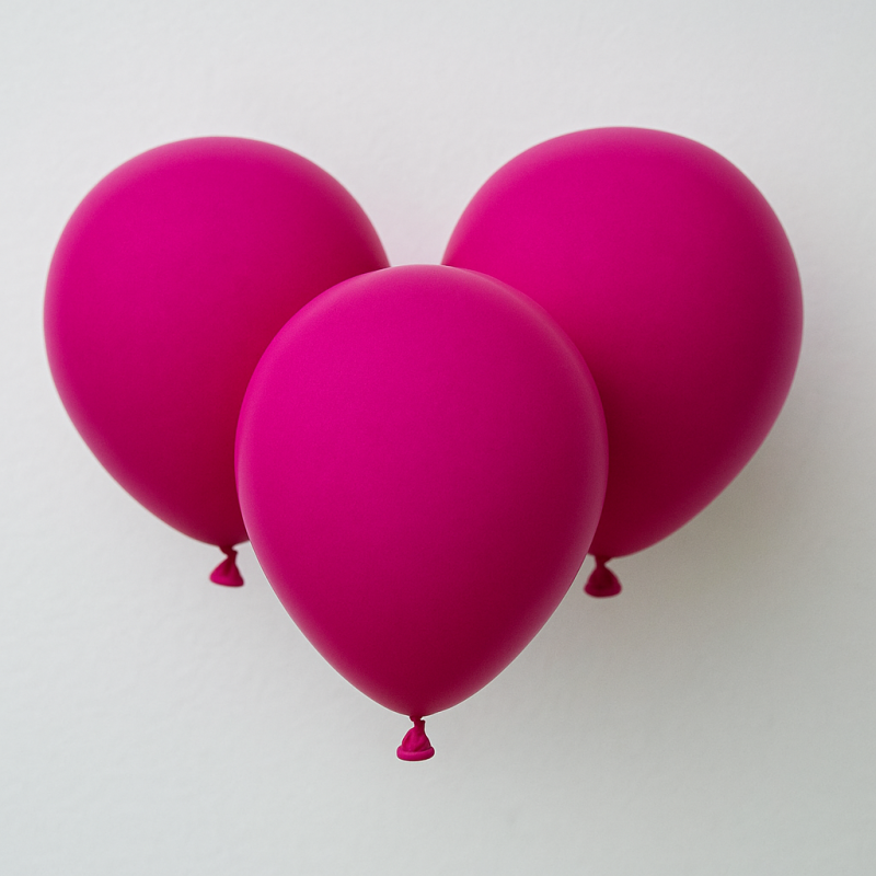 10 броя парти балони, изработени от траен каучук с класическа форма в цикламен цвят.