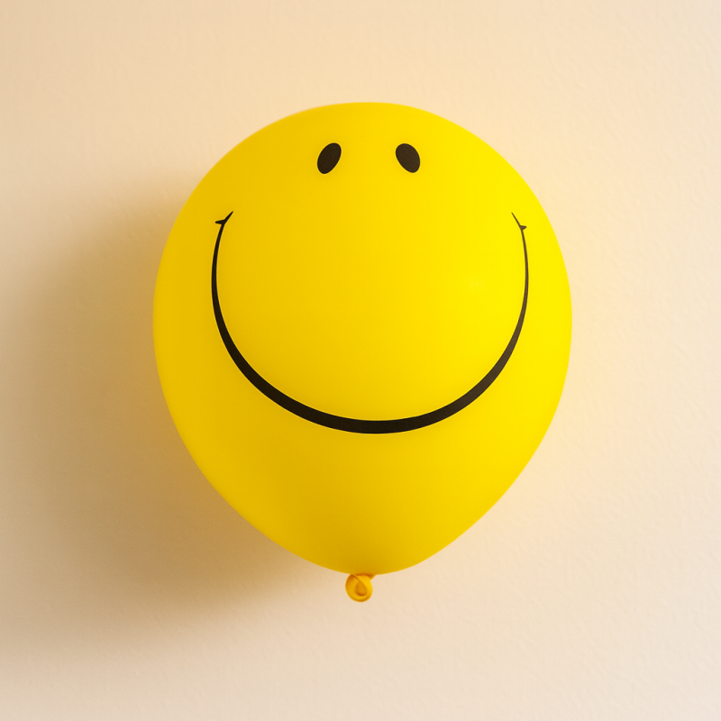 Голям парти балон, изработен от латекс в жълт цвят с усмихната емотикона.
