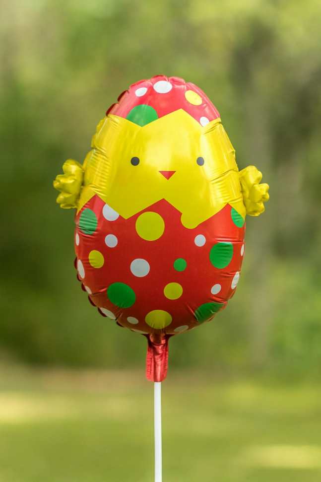 Парти балон, изработен от фолио във формата на цветно великденско яйце, от което се излюпва пиленце.