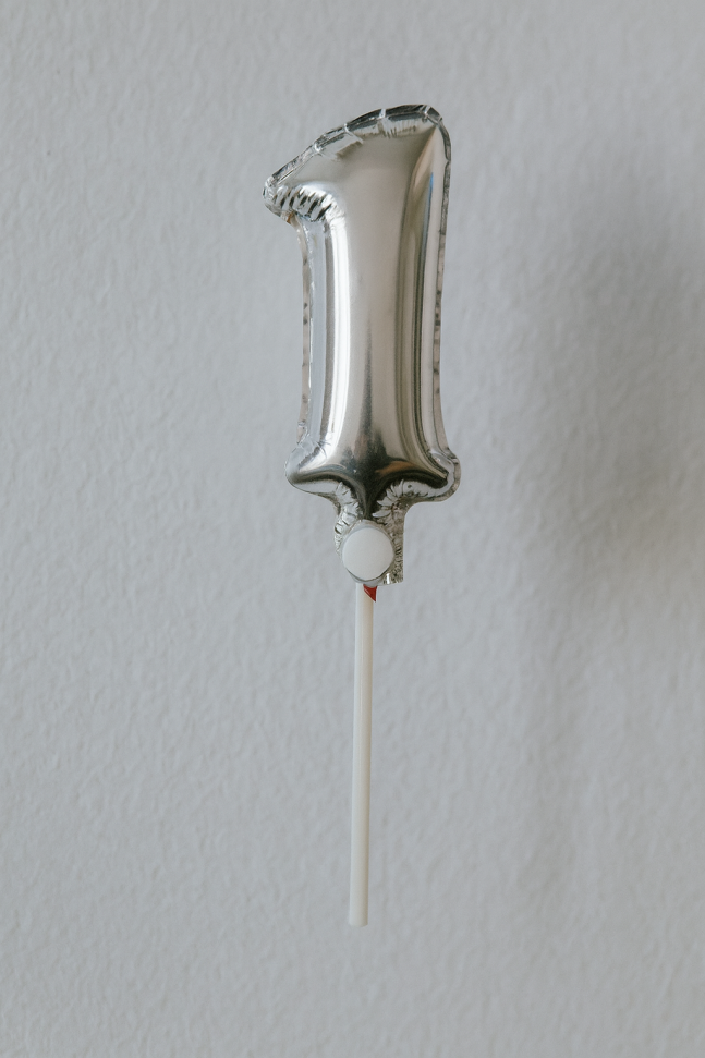 Парти балон, изработен от фолио във формата на цифрата 1 в сребрист цвят.