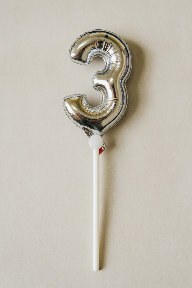 Парти балон, изработен от фолио във формата на цифрата 3 в сребрист цвят.