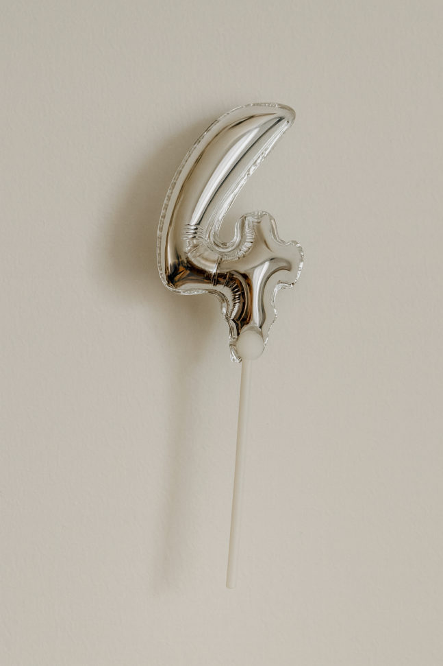 Парти балон, изработен от фолио във формата на цифрата 4 в сребрист цвят.