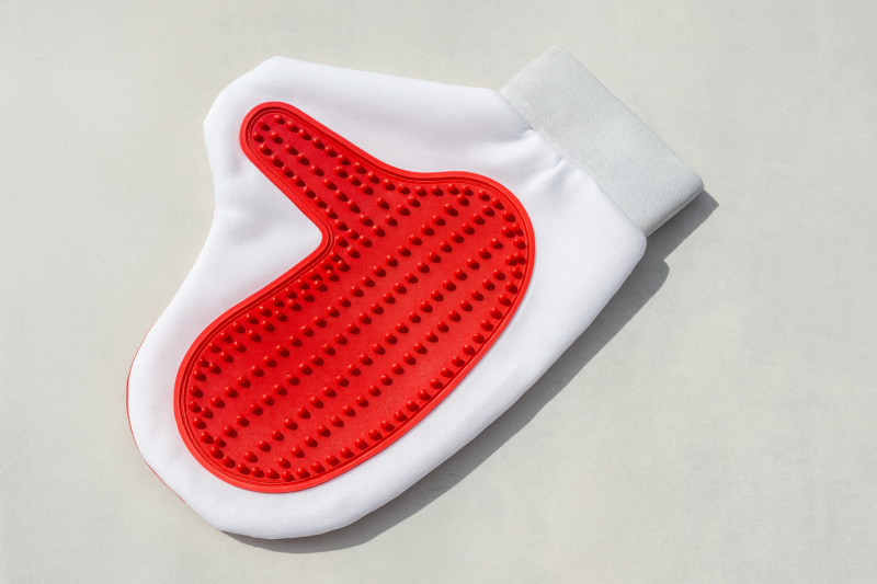 Ръкавица за почистване и масаж, подходяща за кучета и котки, която държи ръката ви чиста, докато се грижите и масажирате домашния любимец.