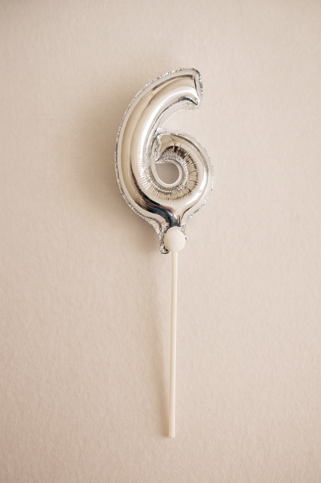 Парти балон, изработен от фолио във формата на цифрата 6 в сребрист цвят.