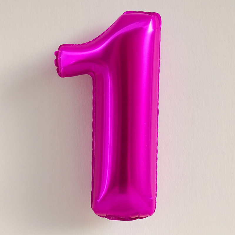 Парти балон, изработен от фолио във формата на цифрата 1 в цикламен цвят.