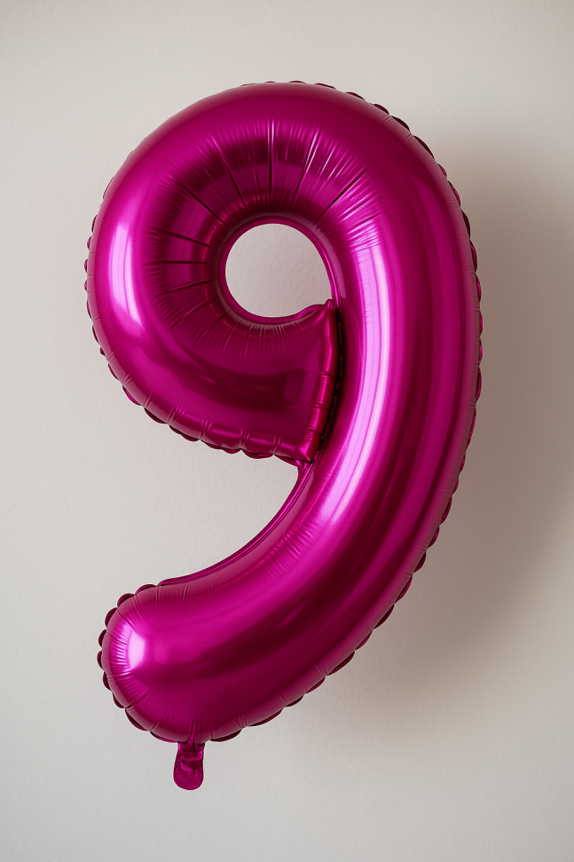 Парти балон, изработен от фолио във формата на цифрата 9 в цикламен цвят.