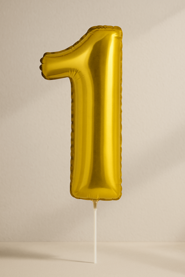 Парти балон, изработен от фолио във формата на цифрата 1 в златист цвят.