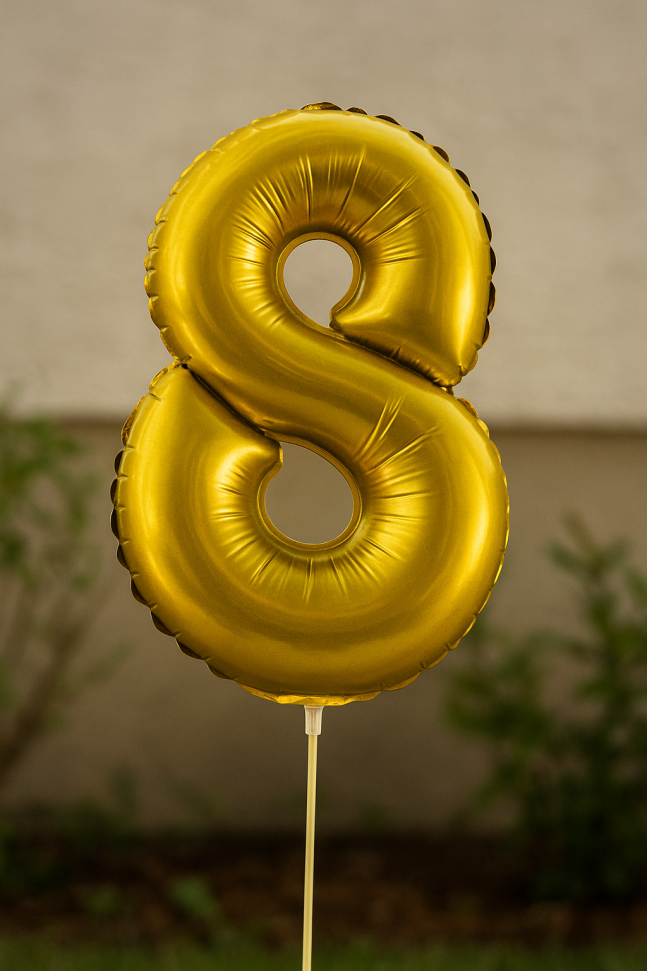 Парти балон, изработен от фолио във формата на цифрата 8 в златист цвят.