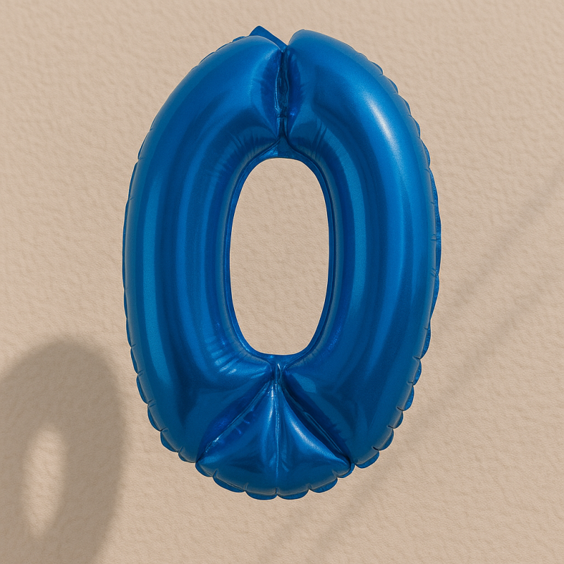 Парти балон, изработен от фолио във формата на цифрата 0 в син цвят.